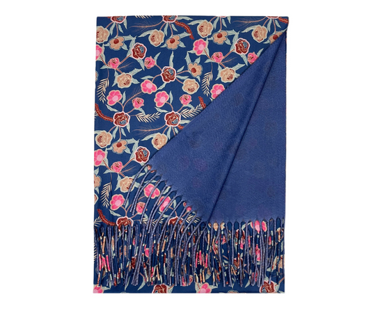Rose & Mixed Floral Wool Tassel Scarf