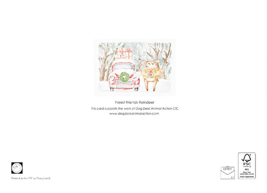 Dog Desk Forest Friends Reindeer Deluxe Christmas Card