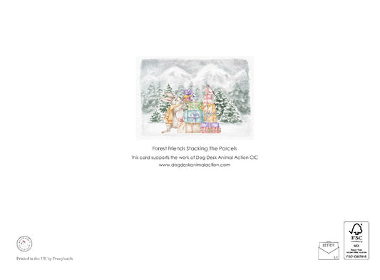 Dog Desk Forest Friends Stacking The Parcels Deluxe Christmas Card